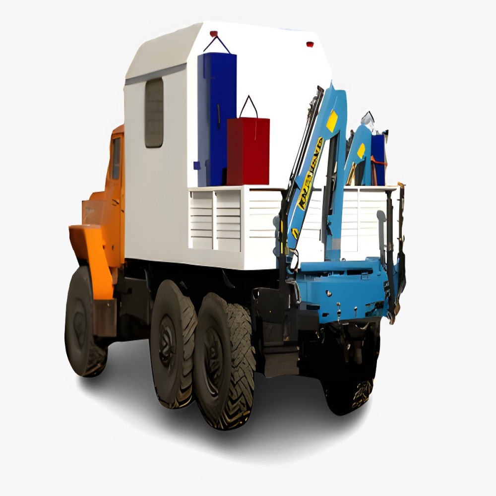 При эксплуатации скважин в условиях холодного и мягкого климата ремонтно-сервисная группа машин Манжанак может быть собрана на шасси различных транспортных средств, предназначенных для подвоза необходимого оборудования к устью скважины, подъема ремонтного персонала и оборудования. Имеет два гидроподъемника – гидрогрузовой и гидроподъемник для подъема персонала. Гидравлическая система работает с жидким и вязким маслом.