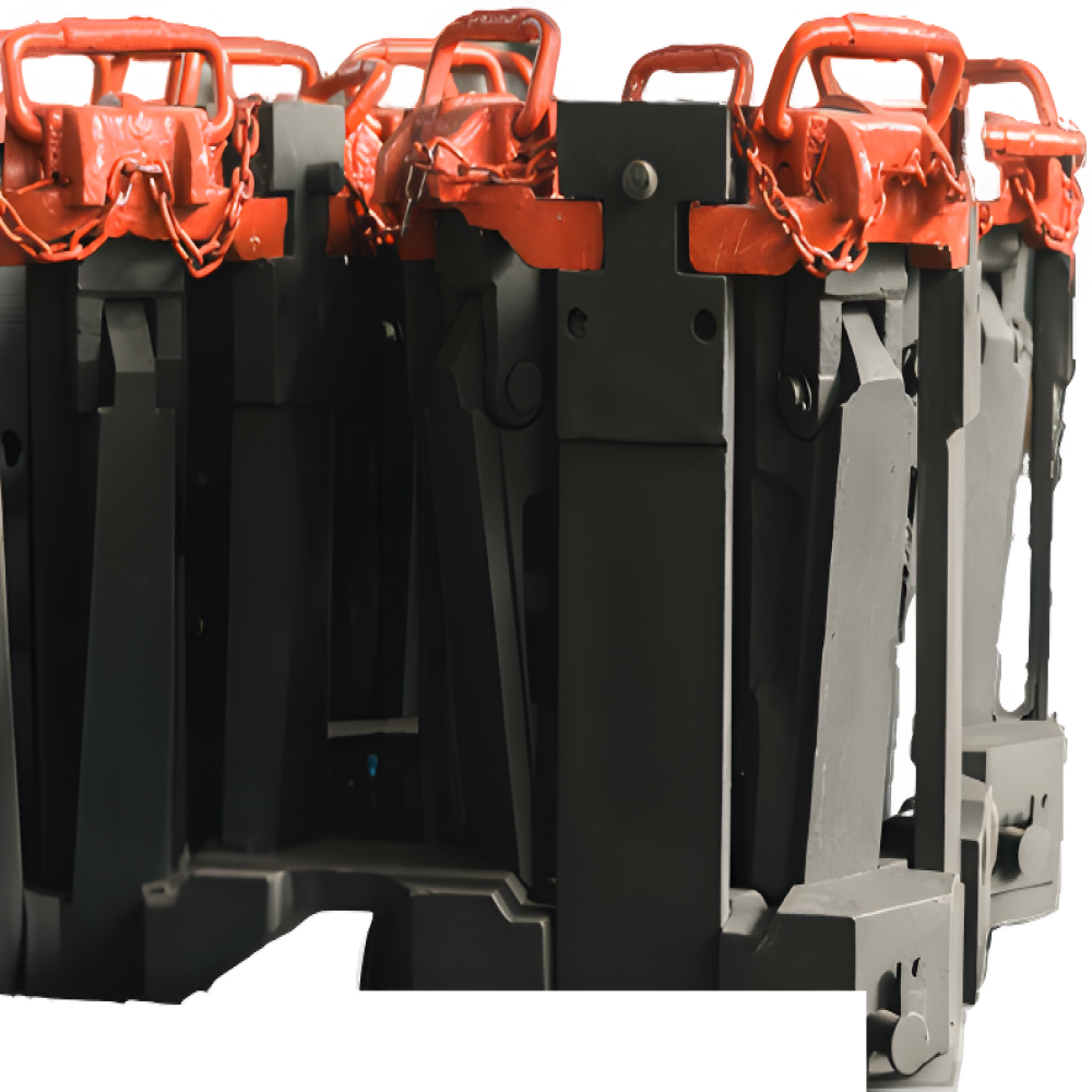 Зажимы клиновые пневматические предназначены для механического удержания насосно-компрессорных, буровых и тяжелых труб в роторе, передачи вращательного движения от ротора к буровому инструменту при снятии шпилек.